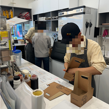 시작 전 긴장된 모습이었으나, 시간이 지날수록 고객을 응대하는 태도 및 주방과 홀 사이의 협력이 얼마나 중요한지를 느꼈으며, 할 수 있다는 자신감과 수행력이 향상되었습니다.